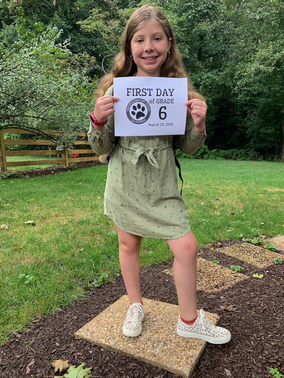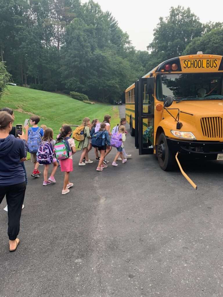 The morning bus ride was a bit delayed due to a new first grade neighbor with the first day jitters. The afternoon bus ride was delayed as well due to a double back bus route. It was a long first day. The girls came off the bus happy and ready for day two!