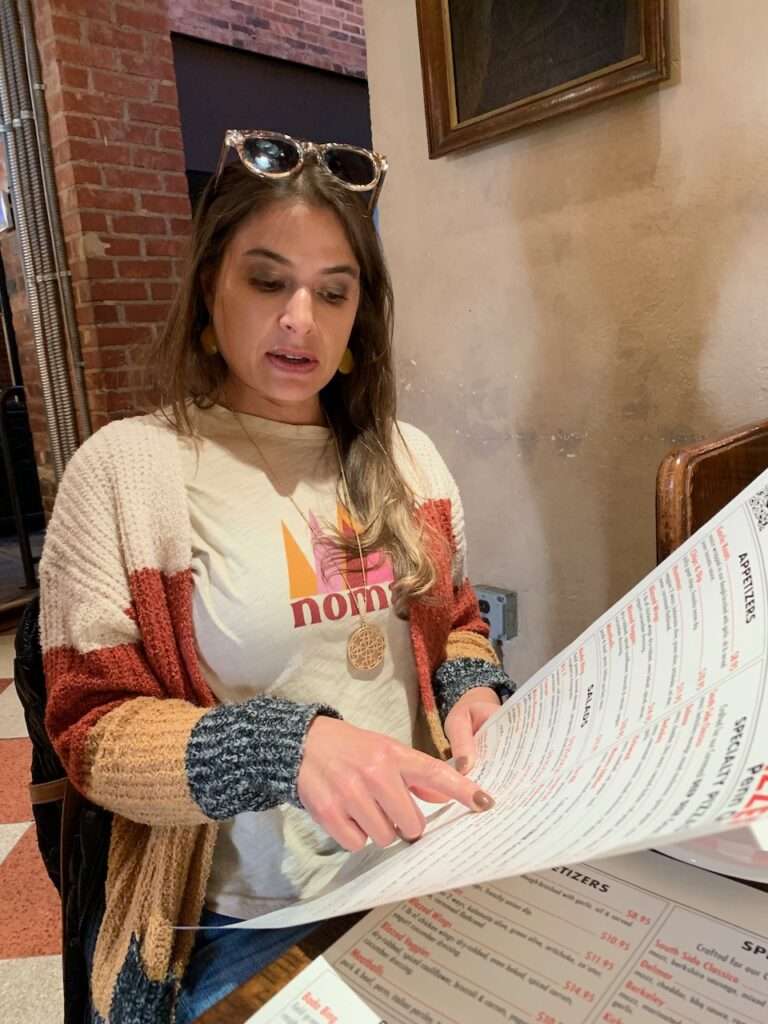 Waiting for yummy pizza and a salad and Pi Pizzeria.