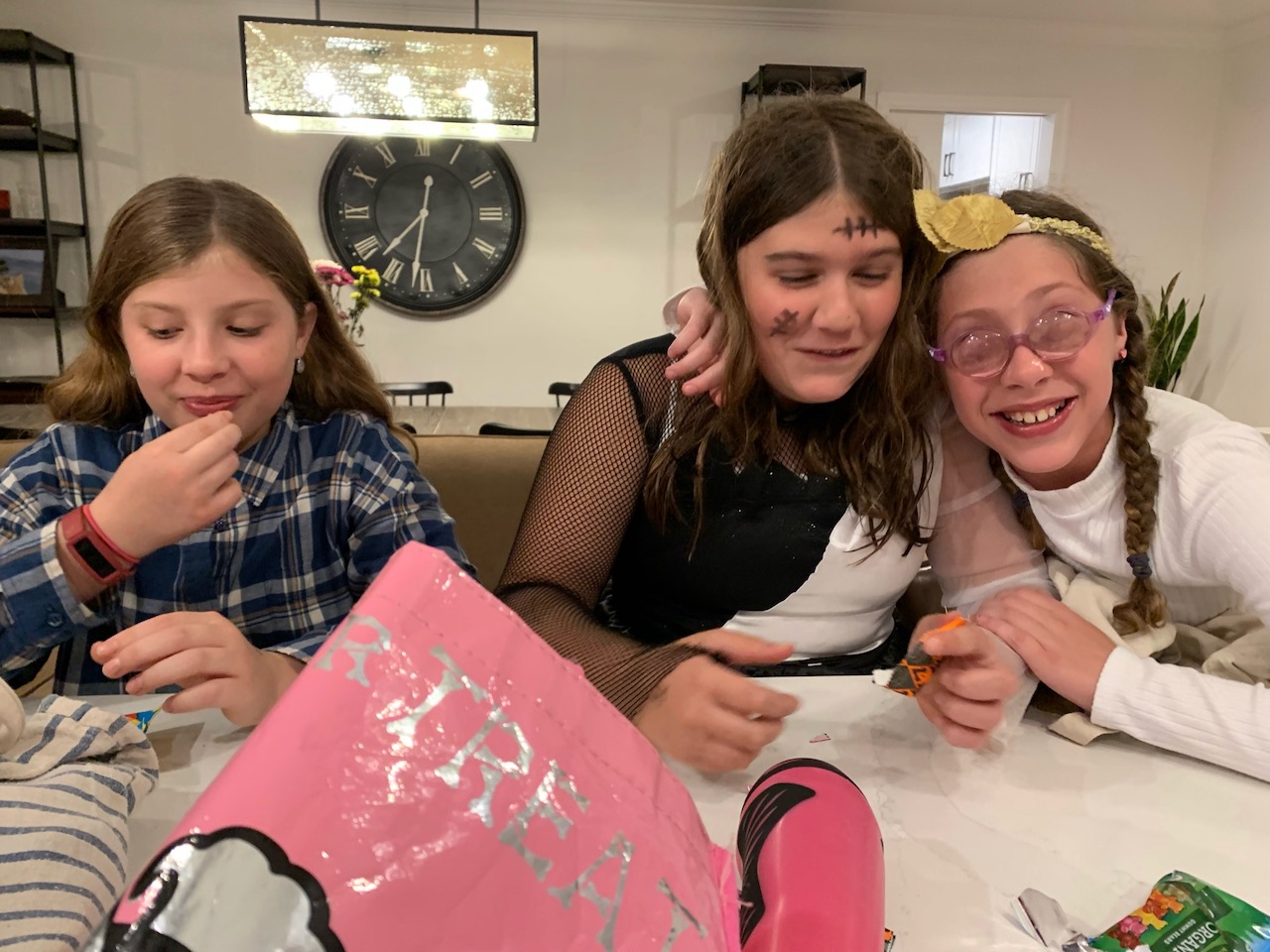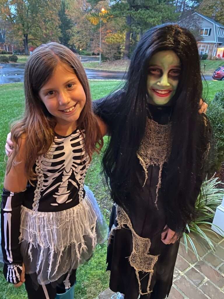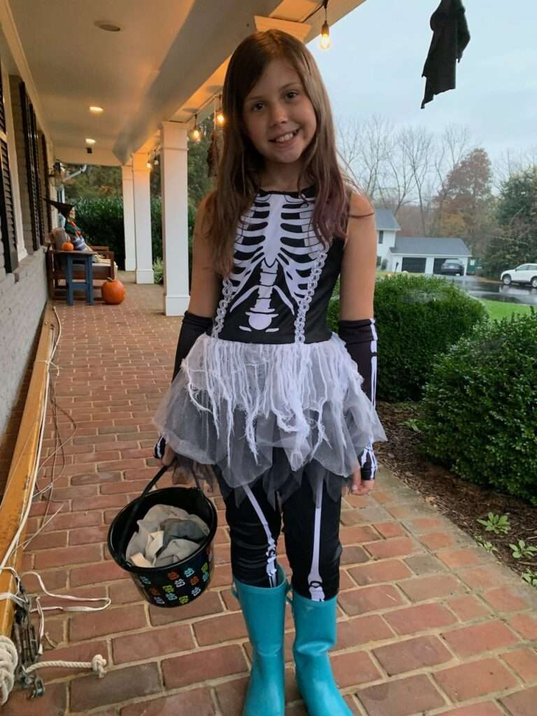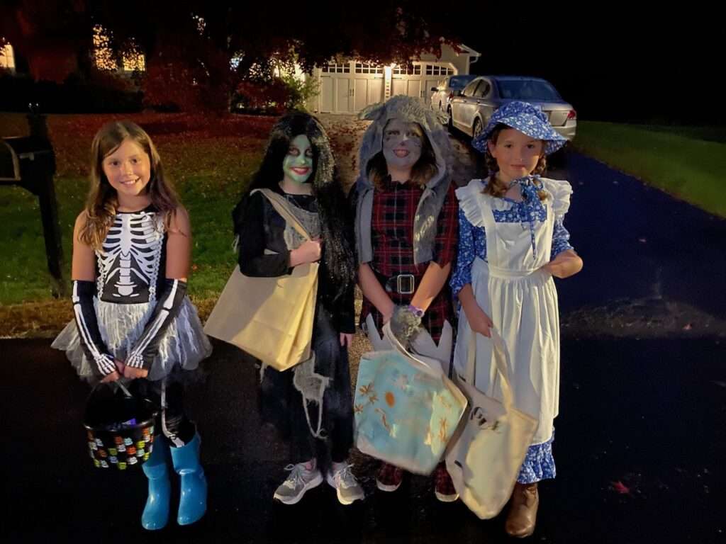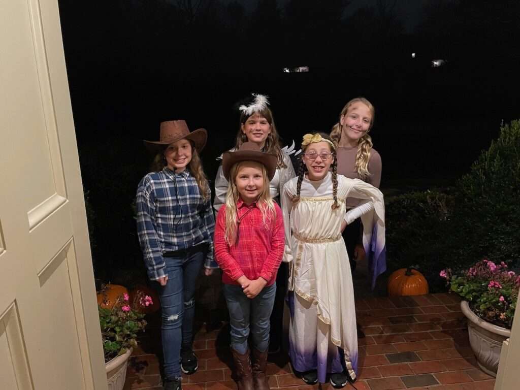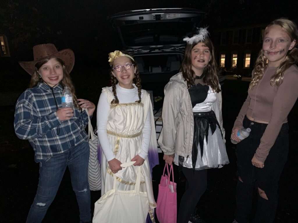 Harper didn’t trick or treat in our neighborhood this year. She felt strongly about trick or treating with Liza so we let her and I’m glad…her and Liza also ran into two other of their friends. While she loves this neighborhood and would have had a fun time staying here, she had her heart set on being with her school friends.