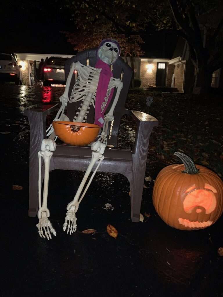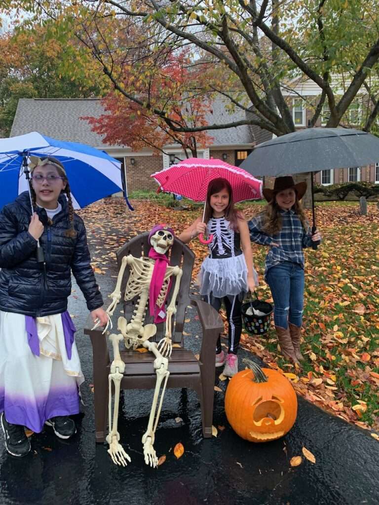 Actual Halloween night fell on a Monday, and a rainy Monday. While the kids didn’t have school Monday, they did have school Tuesday and with the on and off rain, pizza, trick or treating, and the firepit started at 5:30 and was over by 7:30. A quick Halloween for our standards.