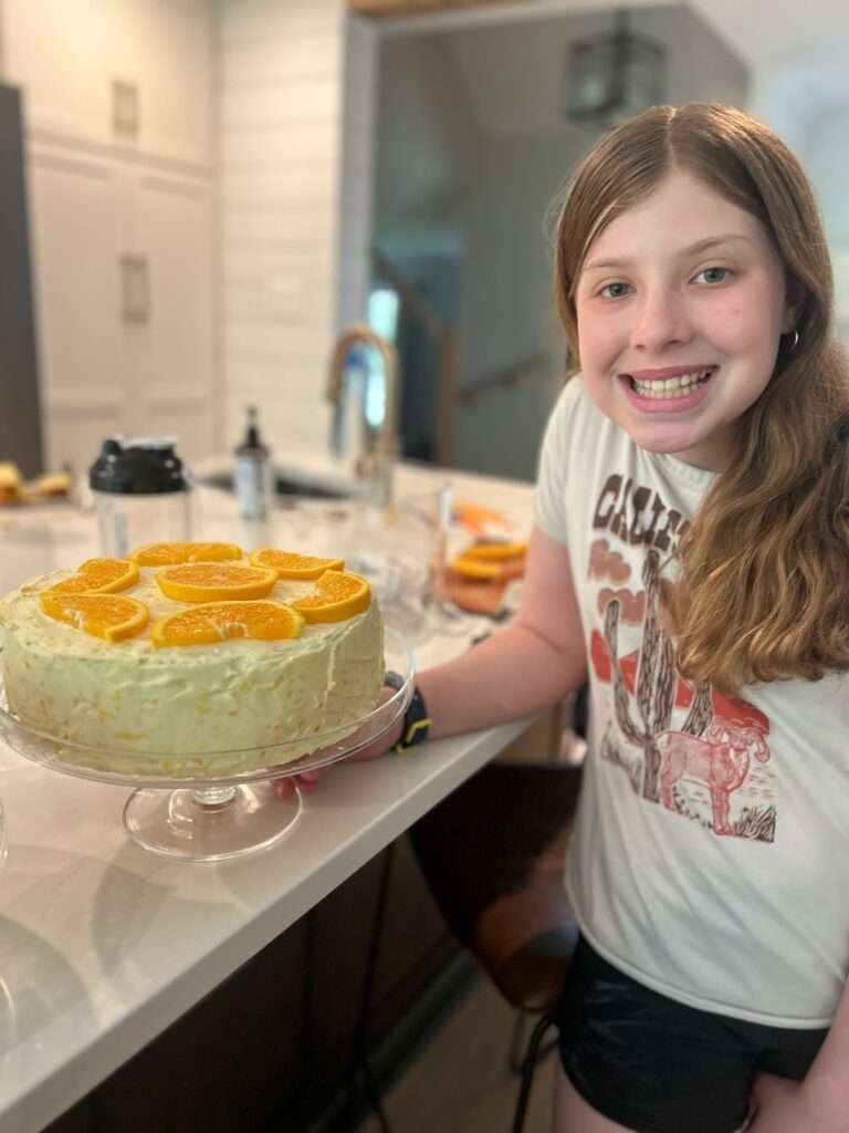 Emerson – Emerson decided on a lovely sponge cake with orange buttercream frosting. I’m not sure Emerson has ever had a sponge cake, but that is what she decided. The sponge cake was good, though sponge cake in general is nothing special. However, it was light, fluffy, and paired with the orange buttercream it was truly a lovely tasting and beautiful dessert. Emerson used Justin’s suggestion of Orange You Glad I Didn’t Say Banana Cake!