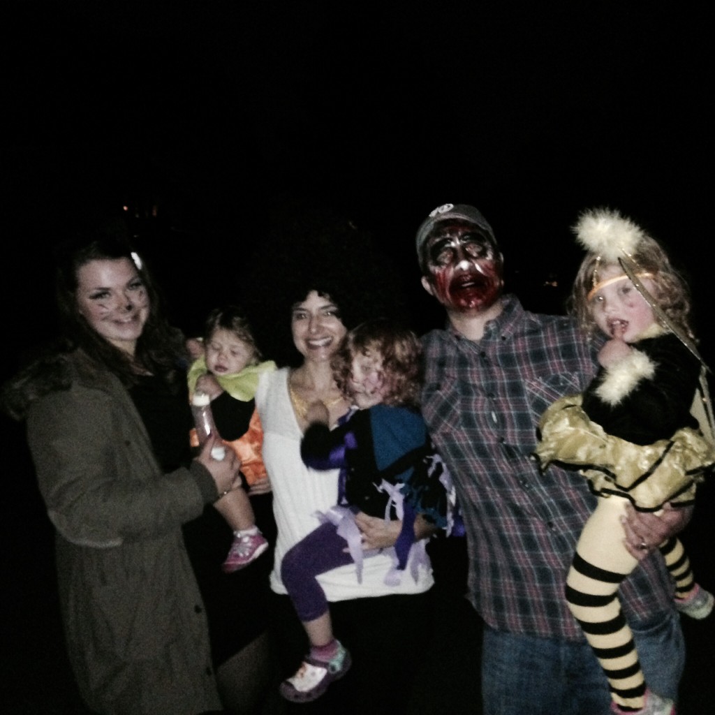 While I was weak in my Halloween costume this year, I was strong in my cul-de-sac socializing. We trick or treated for an hour and then proceeded to spend five more hours hanging out by the bonfire. I’m still not even sure how that is possible. The girls went to bed much earlier than that…fortunately Larrisa was willing to go in early and give the girls shower and put them to bed! TREAT! All night, I was living in the moment and so appreciative of the wonderful neighborhood we live in and I didn’t want to miss a minute.