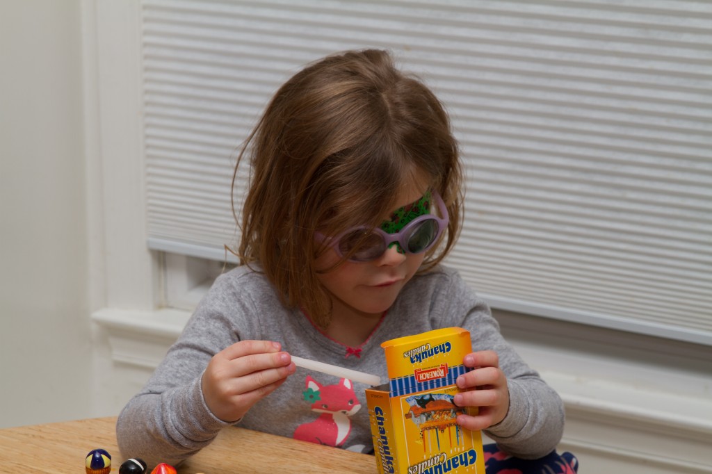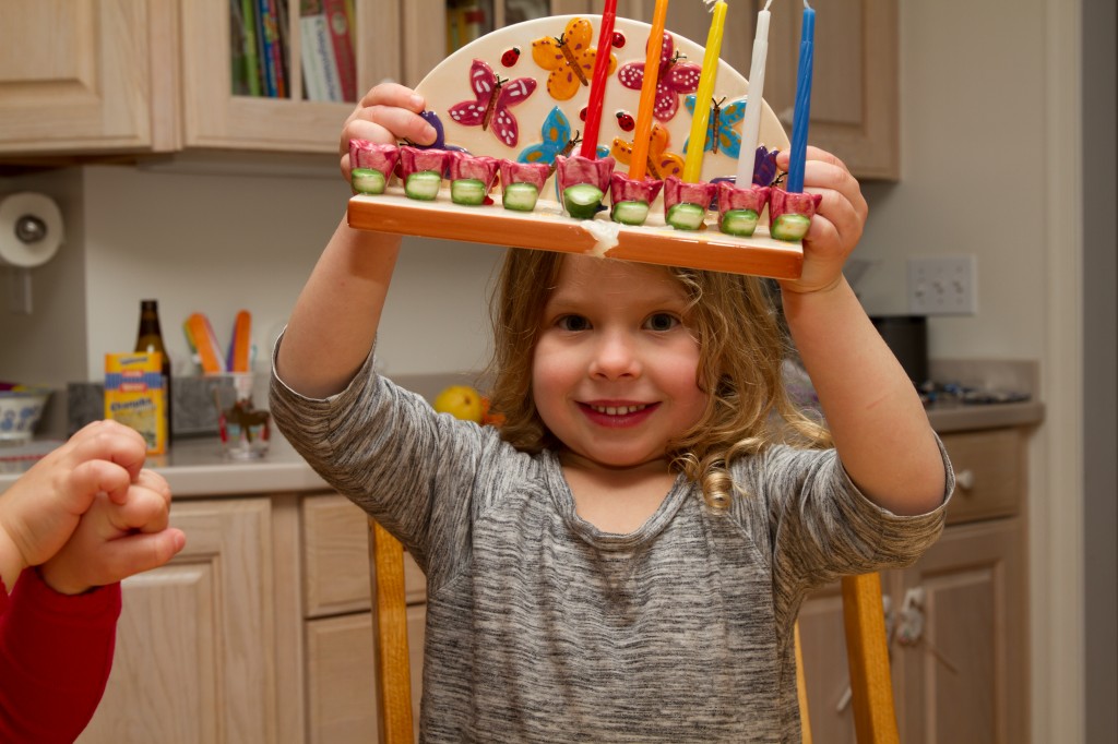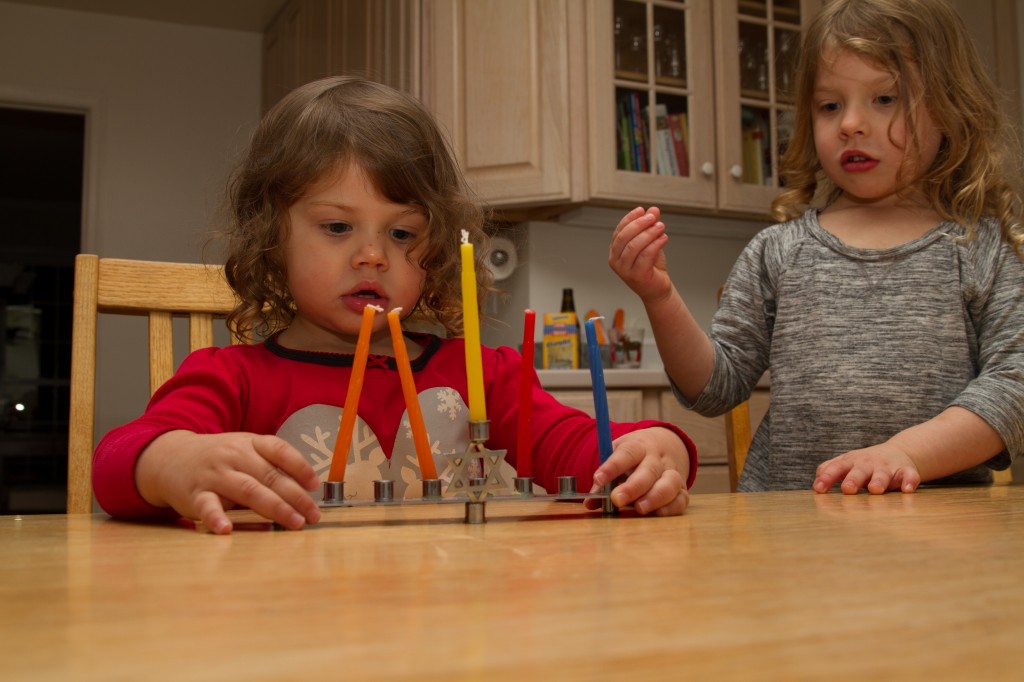 Ludmila spent the first night of Hanukkah with us at my parents and then was around for the lighting of the menorah at least several more nights during the week. One night we brought out the camera. Here is Avery picking out her candles….choosing the right colors is part of the fun. It’s funny how as they take forever, I think to myself, just pick a darn color quickly. But deep down I’m also recalling doing the same exact thing as a kid and knowing that I would still be selective in my color scheme today.