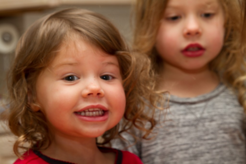 Blurry picture, but typical Harper face. Also, I sort of love this picture of Emerson because she always wears her hair and the back and refuses to put it in front…so this look is a rare moment.