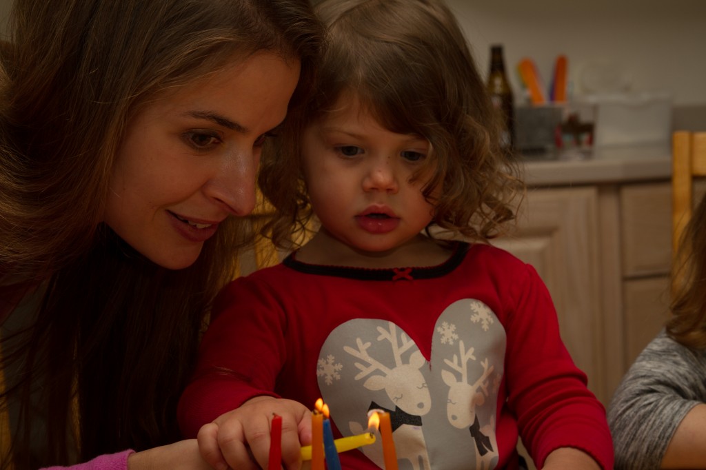 We lit the candles and said the prayer each night after at our home. The girls definitely know it and sometimes can even say quite a bit of it without much prompting. Other nights I end up saying it myself especially the nights the girls are also helping light the candles as their level of concentration on lighting the candles appears to take precedence over remembering the prayer.