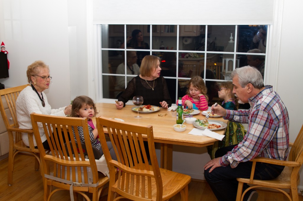 The girls had a good time and we had enough family members who they love, that I was able to concentrate on hosting the party and not have to worry about the girls as I did when they were little. Everyone ate in different areas….some the kitchen.