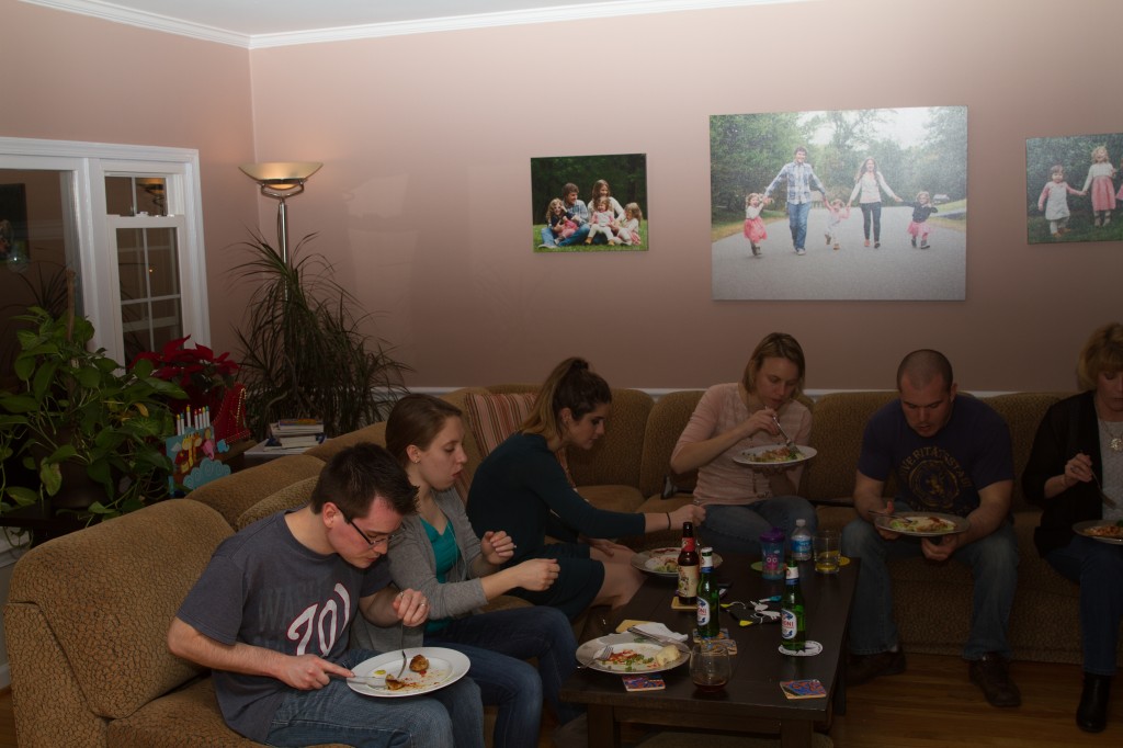 The 7th night of Hanukkah coincided with my mom’s birthday…Dec 12. This year was also the first year that my Grandma would be celebrating her birthday in Virginia (her 88th birthday). Her birthday is December 15th. A few weeks ago, my cousin Jason who lives in California and who I haven’t seen in over 7 years said he was coming to the DC area. And while I hadn’t seen him in seven years, my other Virginia cousins hadn’t seen him and 9 years and truth be told that was only their second, maybe third time meeting each other when they saw each other nine years ago! So I decided I would host a birthday party for my mom and grandma…that way Jason and his new girlfriend Gina (that’s another story for another blog….but not my blog so I’ll refrain) could join us and see everyone at once!
