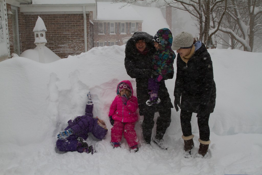 Saturday morning we woke up to snow, lots of it….and it snowed all day until close to 10:00 p.m! The day was actually fun and we didn’t get the least bit stir crazy. The whole house slept in until 9:00 a.m. and while the girls did watch two shows before breakfast and watched one show before bed, there was no T.V watching or IPAD playing during the day. We spent a lot of family time centered around delicious meals and spent some time outside shoveling and playing. At first all the girls were kind of hesitant to go out, especially since the snow was still coming down hard and in their faces. However, they ended up having fun playing while Justin and I were shoveling the driveway. Avery eventually went in because she was too cold, but Emerson and Harper just kept on playing. They were having a great time despite their cheeks being ridiculously red and their hands and feet and hair frozen.