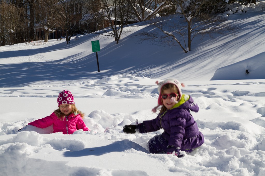 Sunday morning we woke up to the storm’s aftermath…beautiful sunny skies with snow glistening! Sunday was spent doing much of the same as Saturday…eating more delicious food, baking chocolate chip cookies, shoveling, playing in the snow and sledding down the pipestem with the neighbors. Harper was tired and ended up taking two naps in her “cave” while we were outside playing….thus why there are no pictures of her on Sunday.